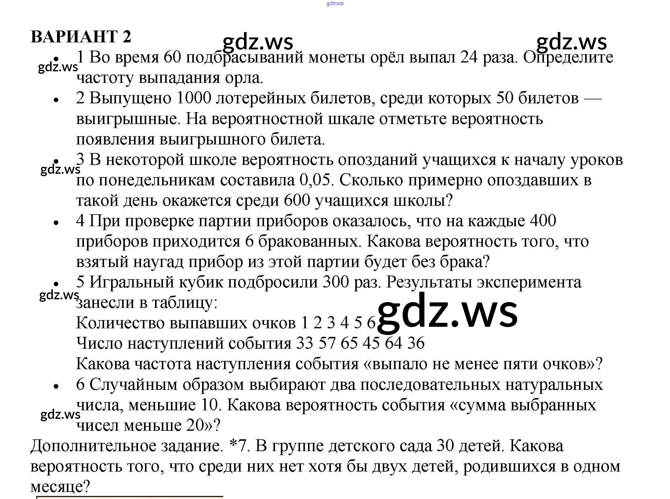 Готовый ответ Контрольная работа №9. Частота и вероятность - Алгебре 7 класс Кузнецова Контрольные работы ФГОС