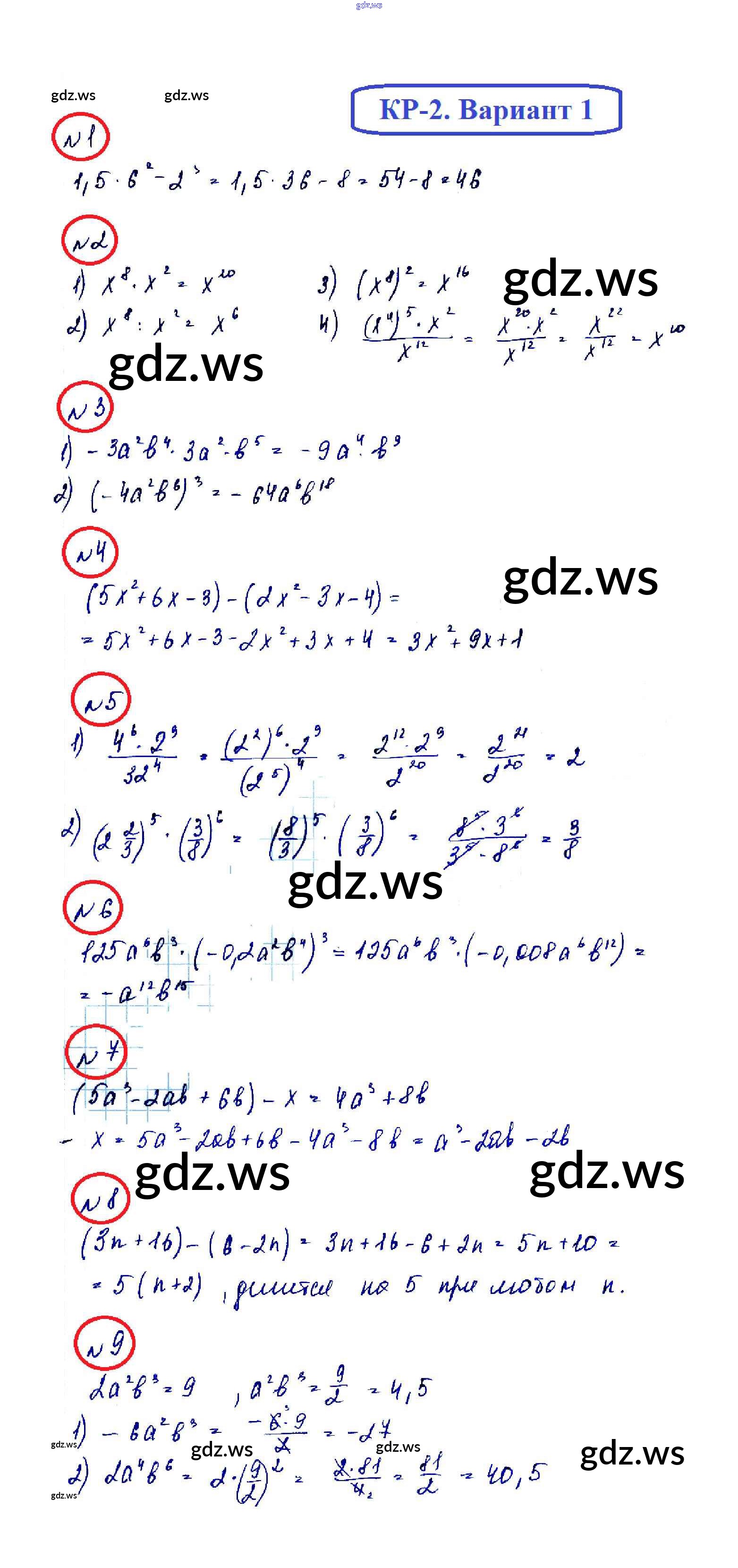 Готовый ответ КР-2. Варианты Контрольные работы - Алгебре 7 класс Мерзляк Дидактические материалы УМК ФГОС