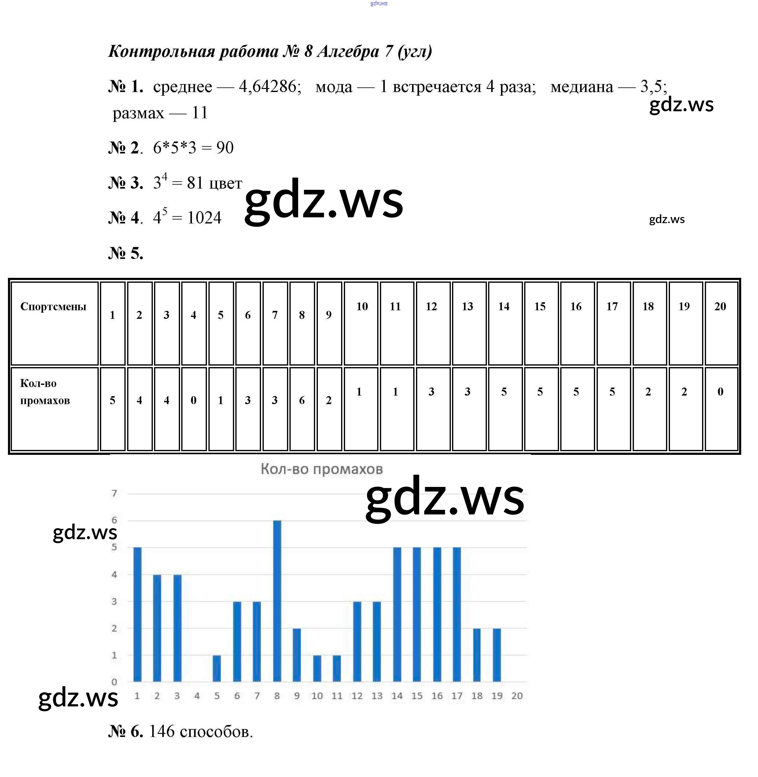 Готовый ответ Контрольная работа 8 (Варианты) Контрольные работы - Алгебре 7 класс Мерзляк Самостоятельные и контрольные работы Углубленный уровень Алгоритм успеха ФГОС