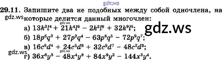 Готовый и полный ответ к § 29. Деление многочлена на одночлен Глава 6 - Алгебре 7 класс Мордкович Задачник Базовый уровень ФГОС