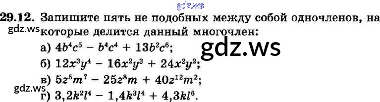 Готовый ответ § 29. Деление многочлена на одночлен Глава 6 - Алгебре 7 класс Мордкович Задачник Базовый уровень ФГОС