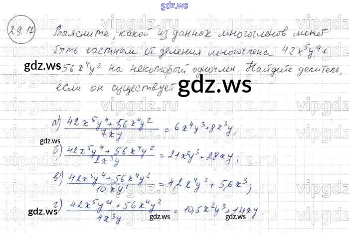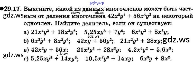 Готовый и полный ответ к § 29. Деление многочлена на одночлен Глава 6 - Алгебре 7 класс Мордкович Задачник Базовый уровень ФГОС
