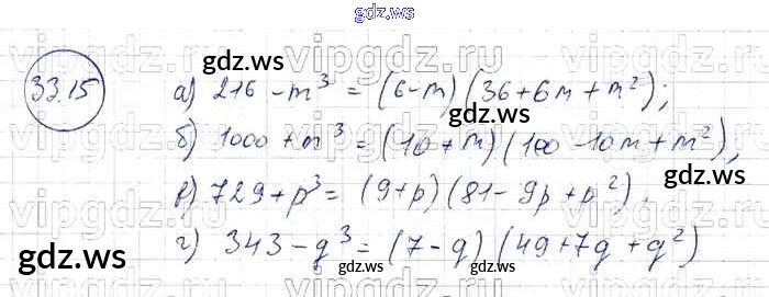Готовый и полный ответ к § 33. Разложение многочленов на множители с помощью формул сокращенного умножения Глава 7 - Алгебре 7 класс Мордкович Задачник Базовый уровень ФГОС