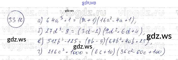 Готовый и полный ответ к § 33. Разложение многочленов на множители с помощью формул сокращенного умножения Глава 7 - Алгебре 7 класс Мордкович Задачник Базовый уровень ФГОС