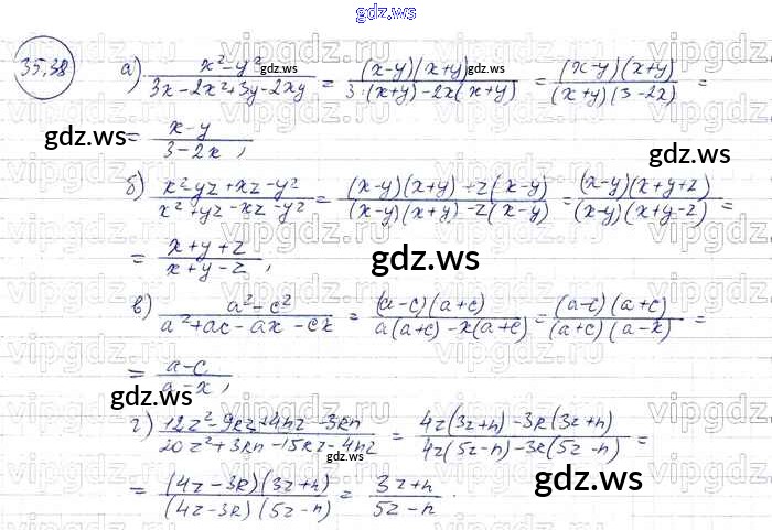 Готовый и полный ответ к § 35. Сокращение алгебраических дробей Глава 7 - Алгебре 7 класс Мордкович Задачник Базовый уровень ФГОС