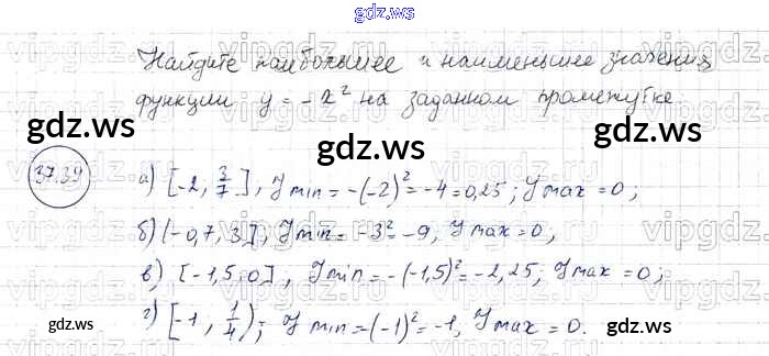 Готовый и полный ответ к § 37. Функция у = х2 и ее график Глава 8 - Алгебре 7 класс Мордкович Задачник Базовый уровень ФГОС