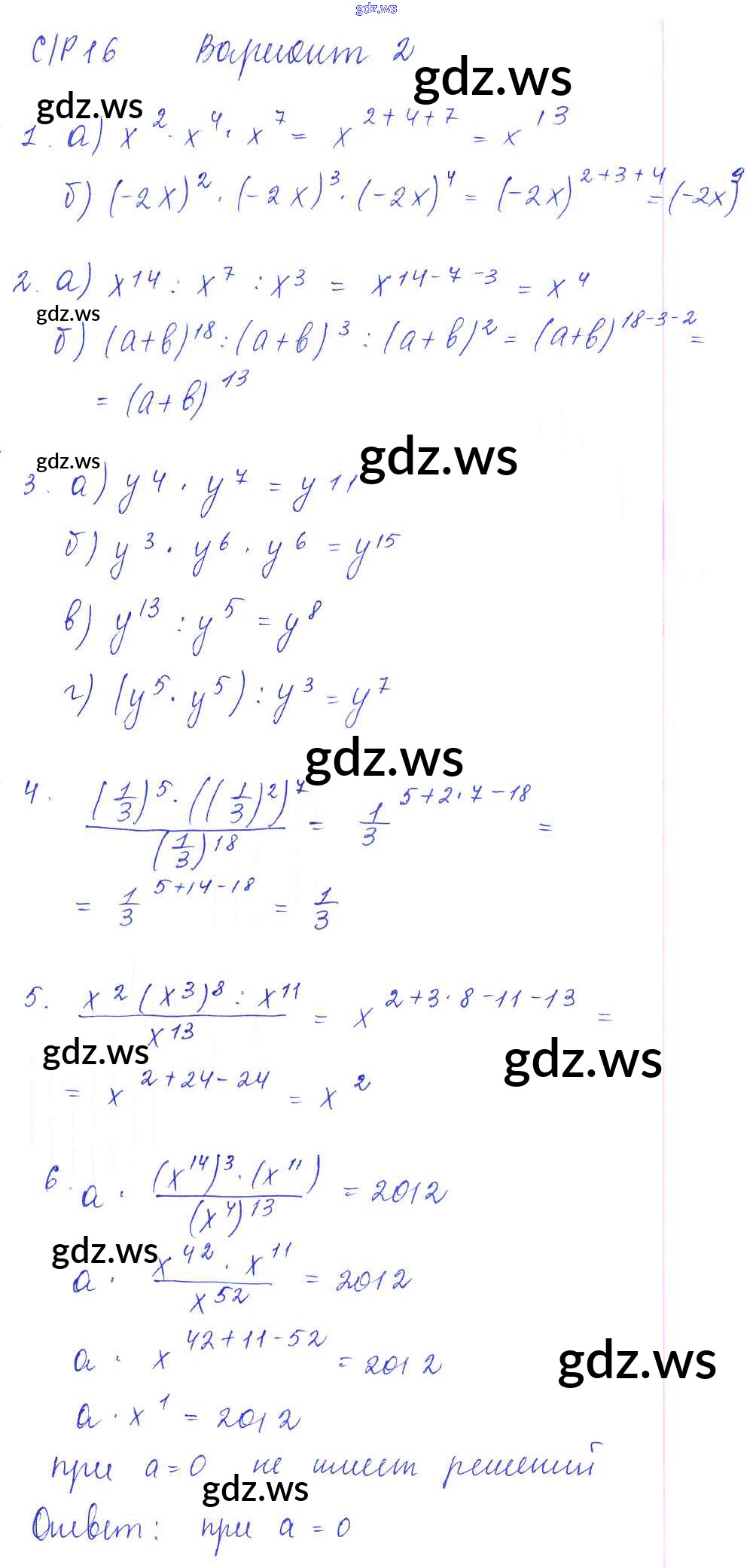 Готовый и полный ответ к СР-16 Самостоятельные работы. Варианты - Алгебре 7 класс Попов Дидактические материалы УМК ФГОС