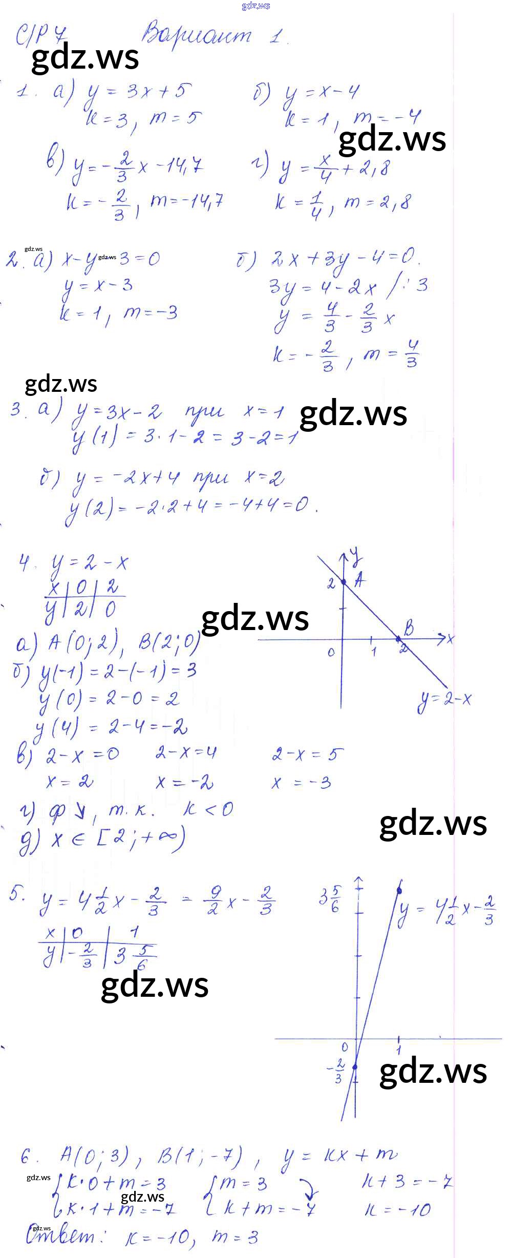 Готовый и полный ответ к СР-7 Самостоятельные работы. Варианты - Алгебре 7 класс Попов Дидактические материалы УМК ФГОС