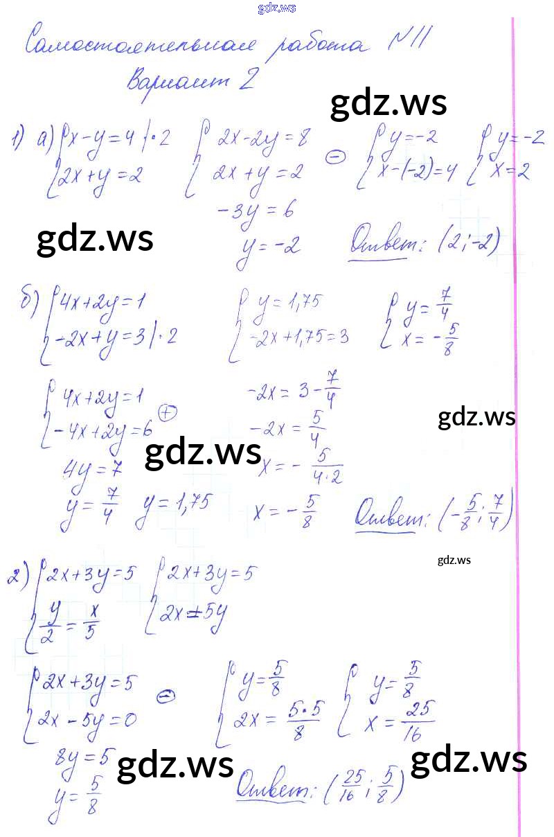 Готовый и полный ответ к СР-11 Самостоятельные работы. Варианты - Алгебре 7 класс Попов Контрольные и самостоятельные работы УМК ФГОС