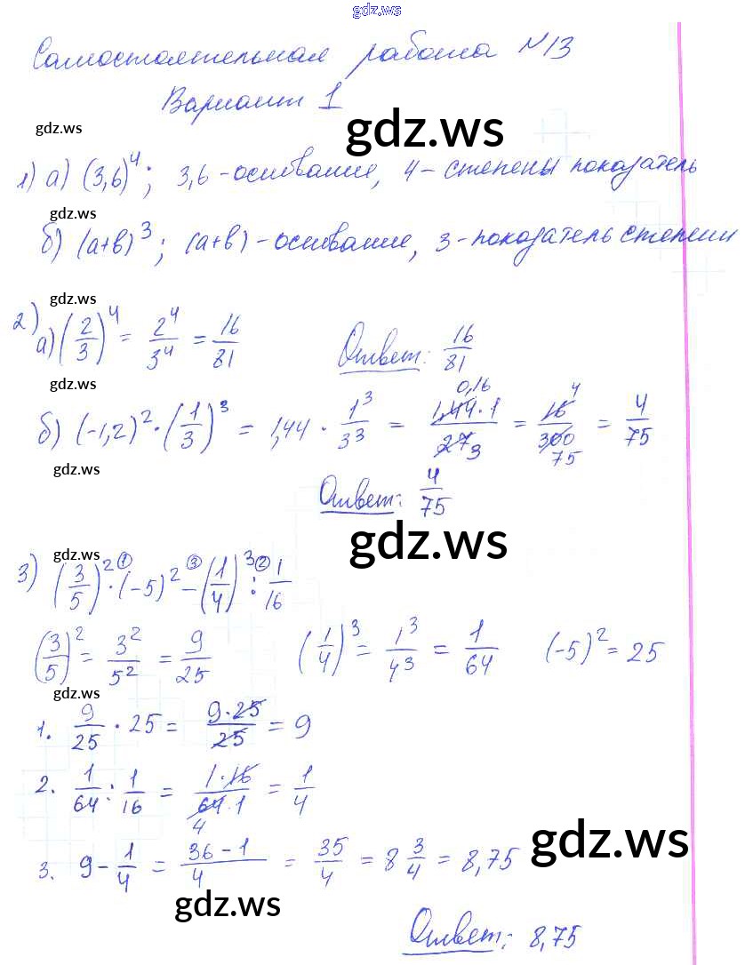 Готовый и полный ответ к СР-13 Самостоятельные работы. Варианты - Алгебре 7 класс Попов Контрольные и самостоятельные работы УМК ФГОС