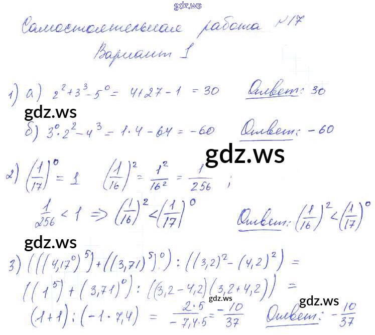 Готовый и полный ответ к СР-17 Самостоятельные работы. Варианты - Алгебре 7 класс Попов Контрольные и самостоятельные работы УМК ФГОС
