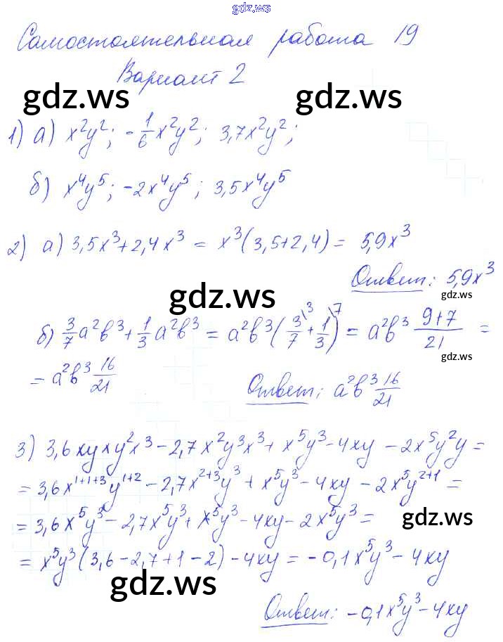 Готовый и полный ответ к СР-19 Самостоятельные работы. Варианты - Алгебре 7 класс Попов Контрольные и самостоятельные работы УМК ФГОС