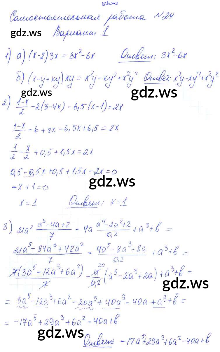 Готовый и полный ответ к СР-24 Самостоятельные работы. Варианты - Алгебре 7 класс Попов Контрольные и самостоятельные работы УМК ФГОС