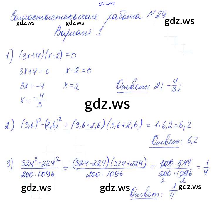 Готовый и полный ответ к СР-29 Самостоятельные работы. Варианты - Алгебре 7 класс Попов Контрольные и самостоятельные работы УМК ФГОС