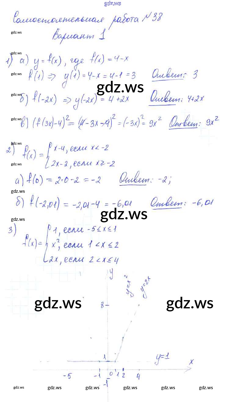 Готовый и полный ответ к СР-38 Самостоятельные работы. Варианты - Алгебре 7 класс Попов Контрольные и самостоятельные работы УМК ФГОС