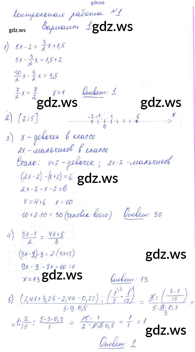 Готовый и полный ответ к КР-1 Контрольные работы. Варианты - Алгебре 7 класс Попов Контрольные и самостоятельные работы УМК ФГОС