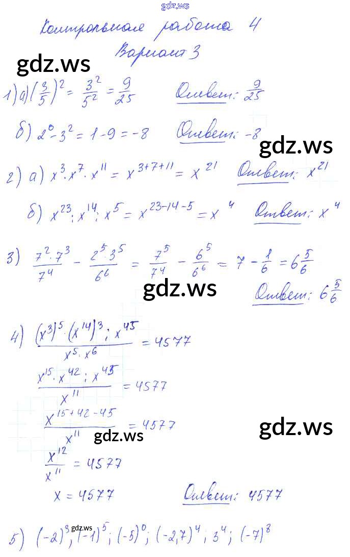 Готовый и полный ответ к КР-4 Контрольные работы. Варианты - Алгебре 7 класс Попов Контрольные и самостоятельные работы УМК ФГОС