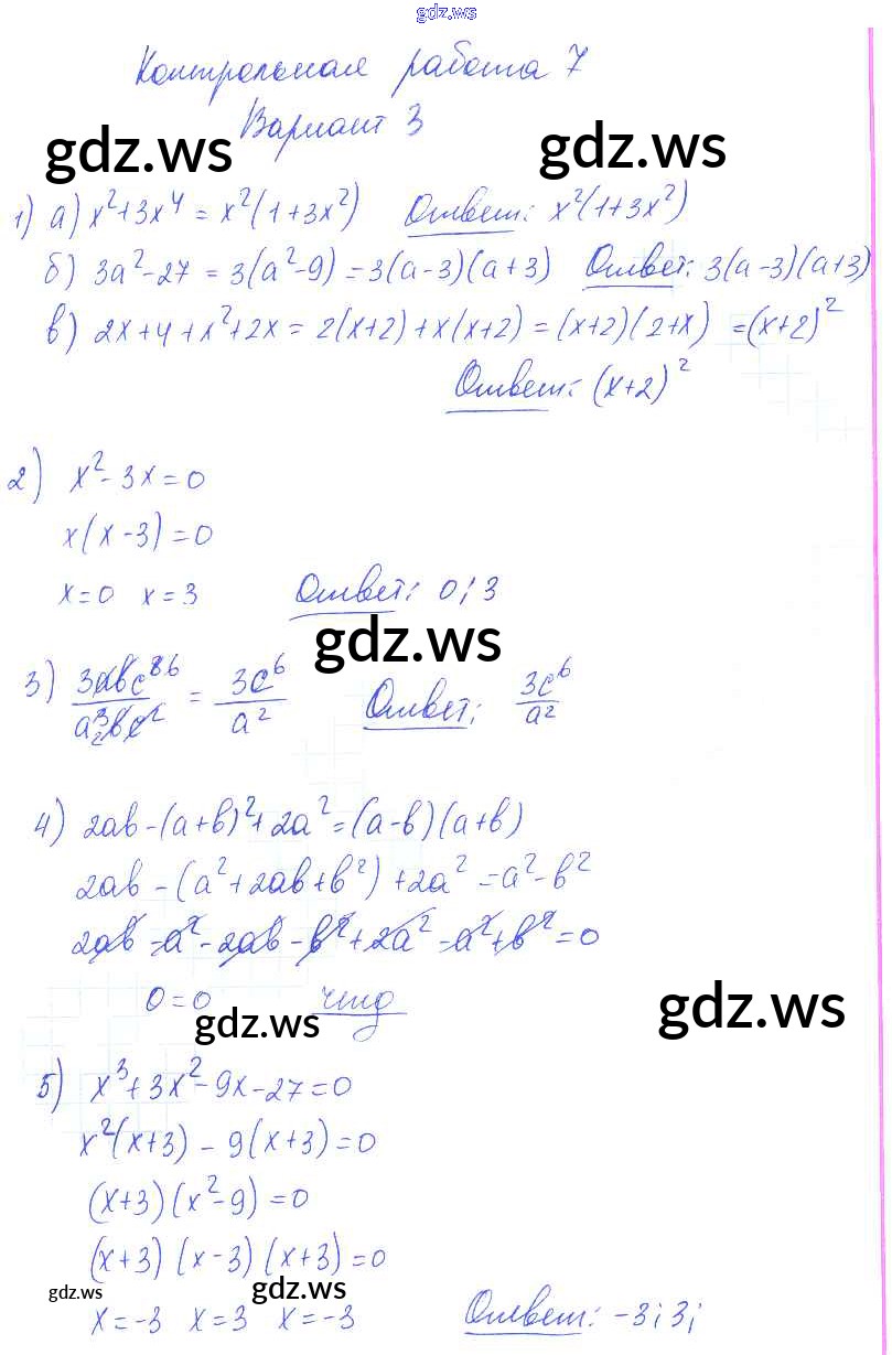 Готовый и полный ответ к КР-7 Контрольные работы. Варианты - Алгебре 7 класс Попов Контрольные и самостоятельные работы УМК ФГОС