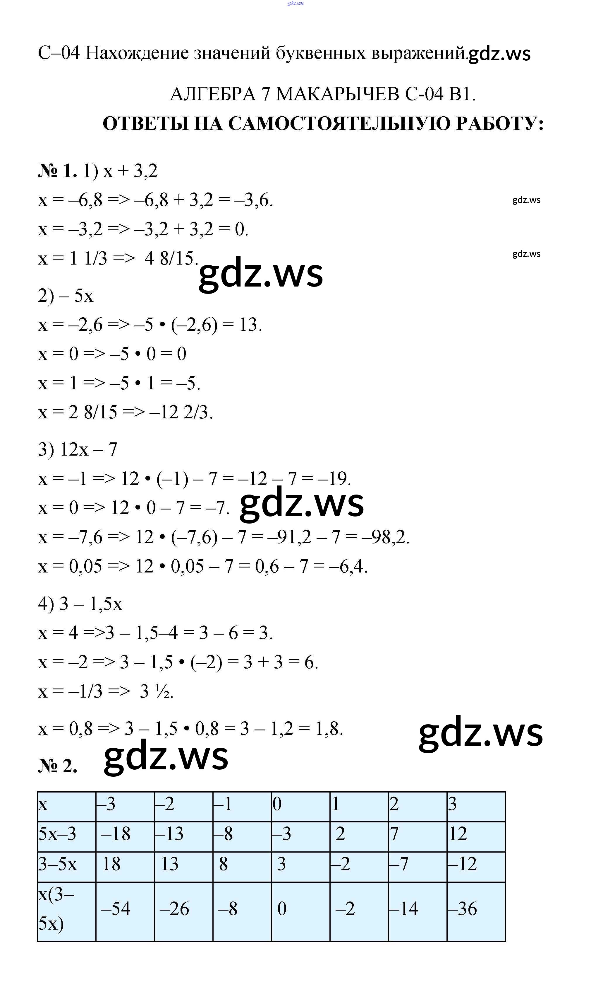 Готовый и полный ответ к Вариант 1 Самостоятельные работы. Варианты - Алгебре 7 класс Звавич Дидактические материалы ФГОС