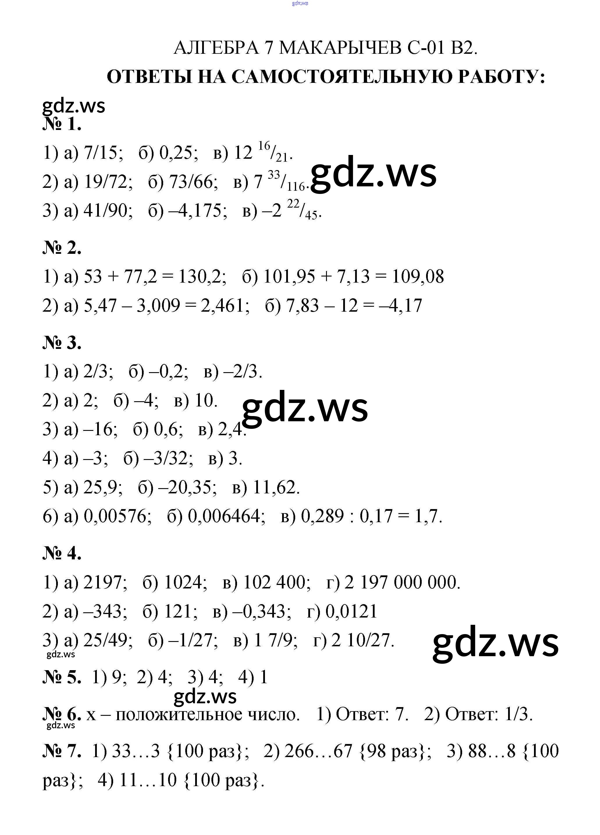 Готовый и полный ответ к Вариант 2 Самостоятельные работы. Варианты - Алгебре 7 класс Звавич Дидактические материалы ФГОС