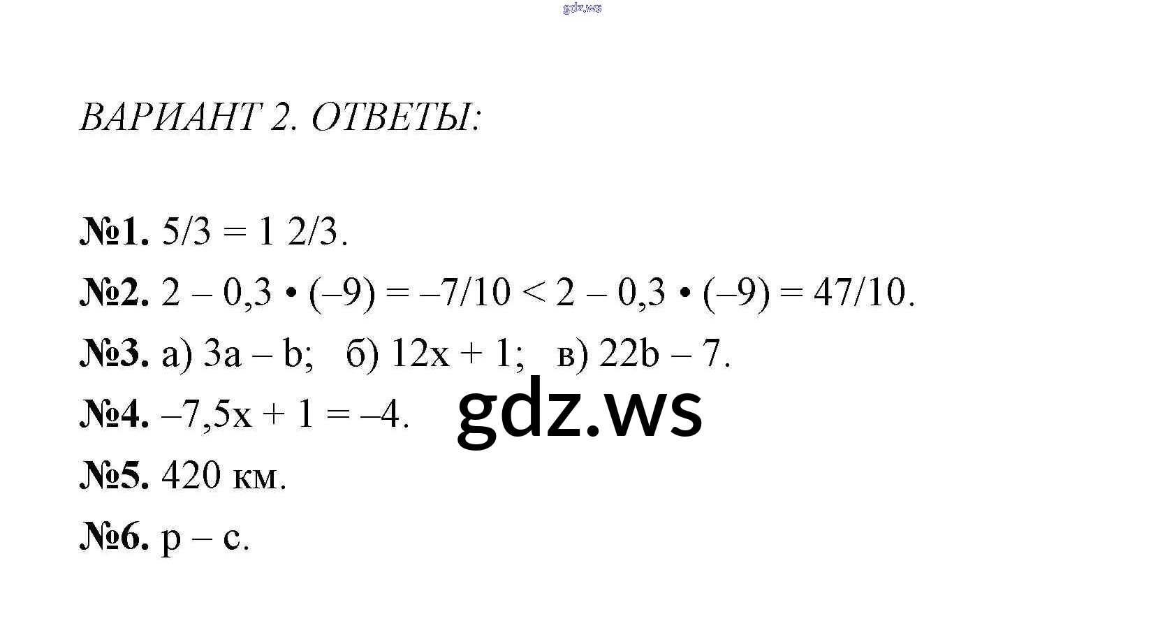 Готовый и полный ответ к Вариант 2 Контрольные работы - Алгебре 7 класс Звавич Дидактические материалы ФГОС