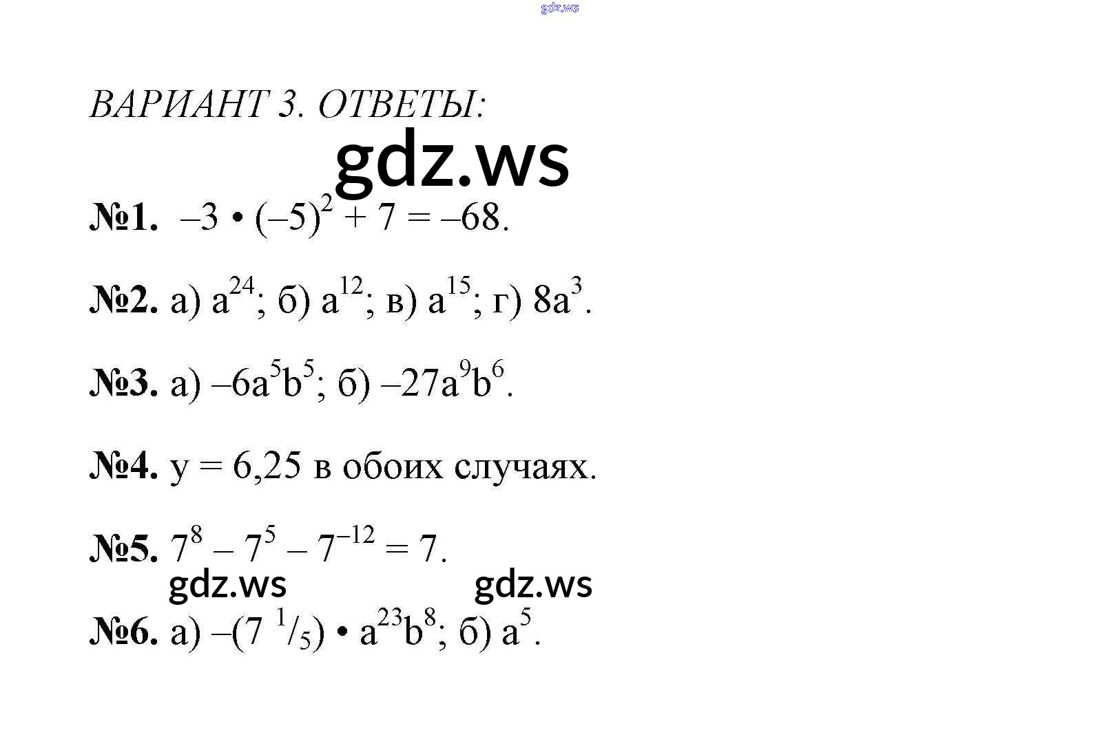 Готовый и полный ответ к Вариант 3 Контрольные работы - Алгебре 7 класс Звавич Дидактические материалы ФГОС