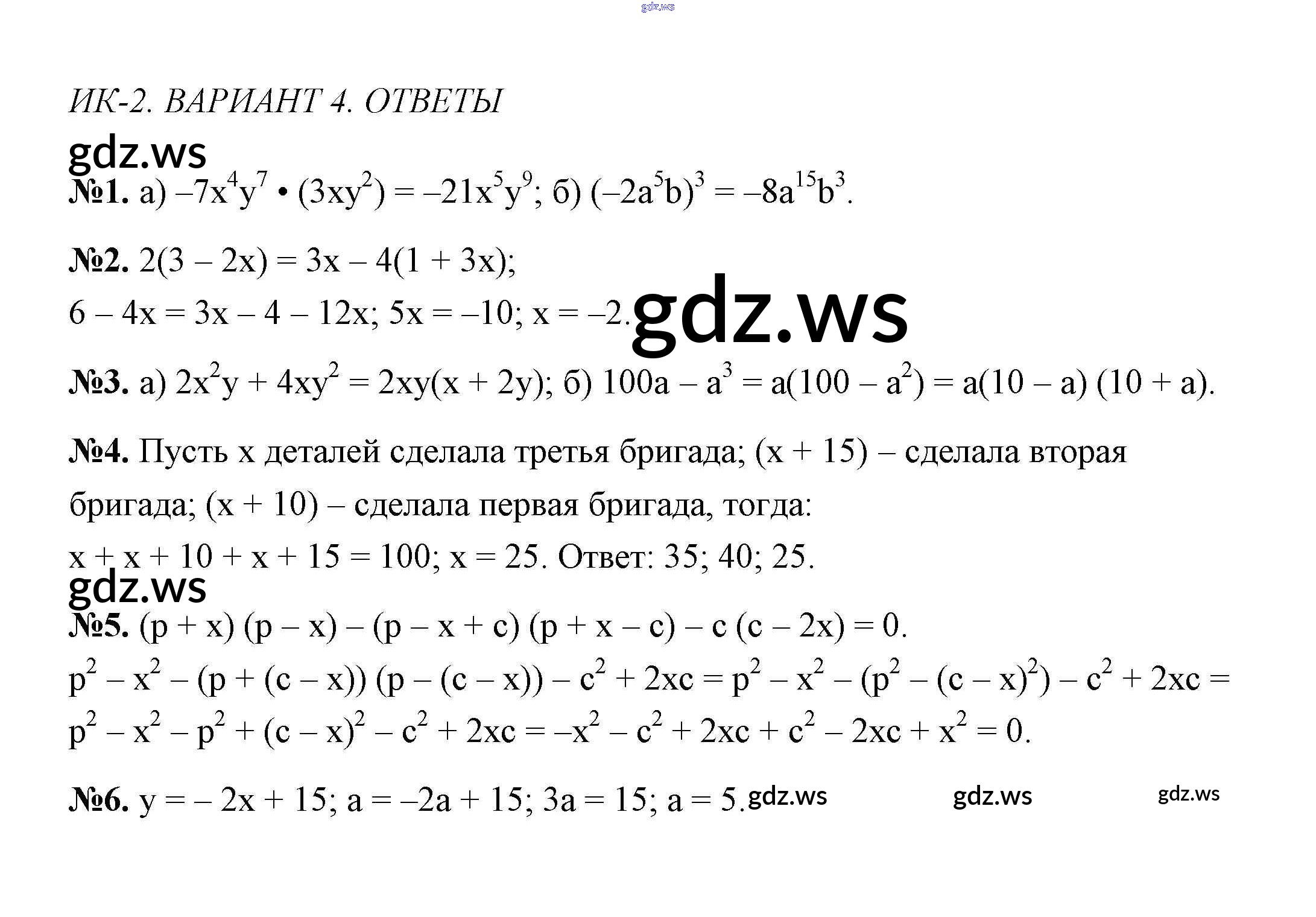 Готовый и полный ответ к Вариант 4 Контрольные работы - Алгебре 7 класс Звавич Дидактические материалы ФГОС