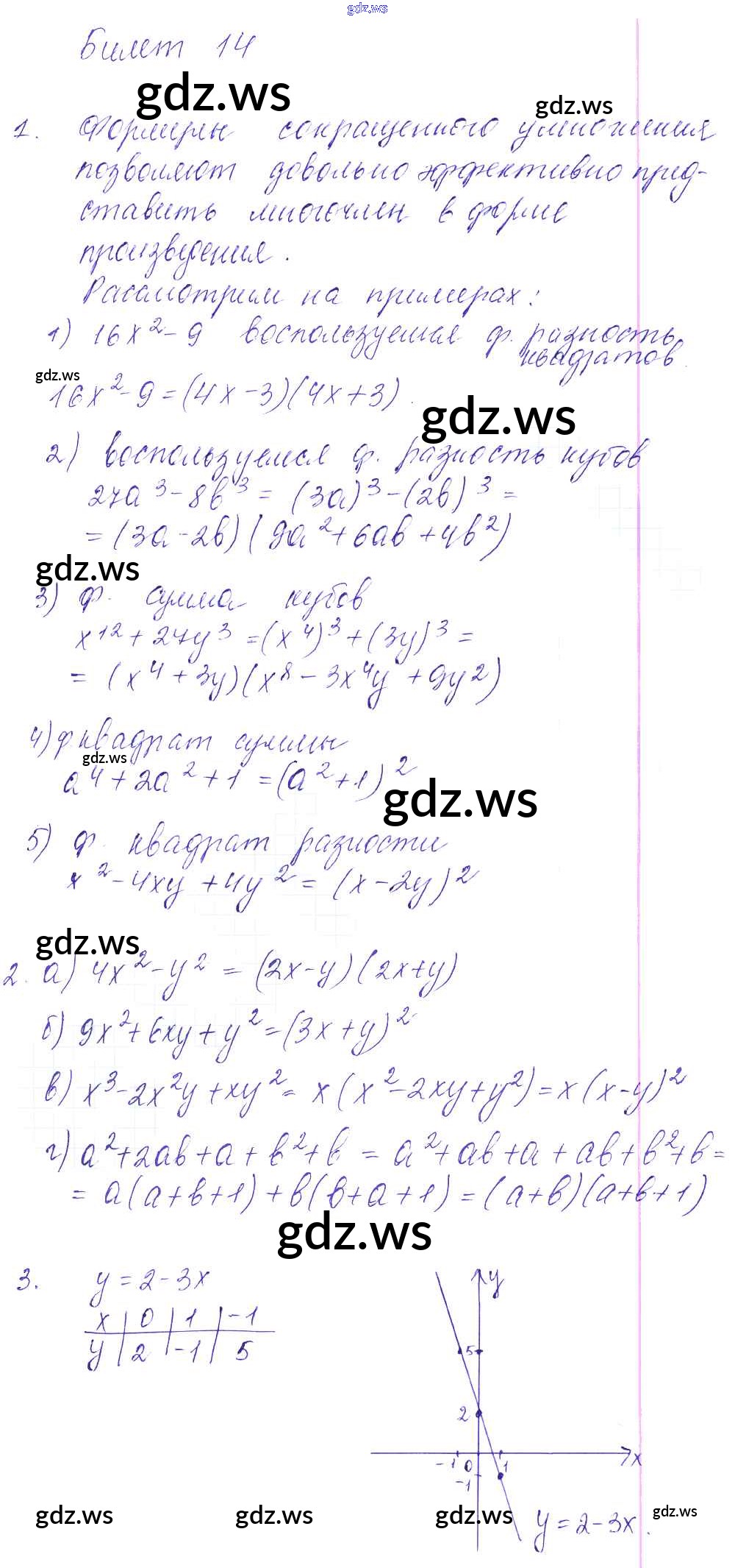 Готовый ответ Билеты - Алгебре 7 класс Звавич Дидактические материалы УМК ФГОС