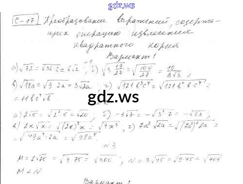 Готовый ответ СР-17. Варианты - Алгебре 8 класс Александрова Самостоятельные работы ФГОС