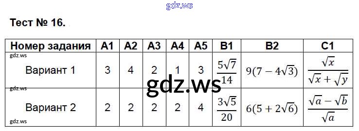 Готовый ответ Тесты - Алгебре 8 класс Черноруцкий Контрольно-измерительные материалы (КИМ) ФГОС
