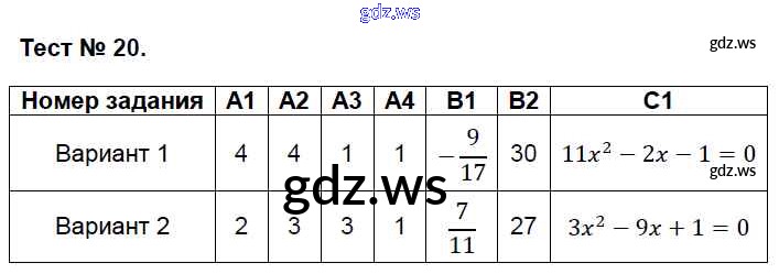 Готовый и полный ответ к Тесты - Алгебре 8 класс Черноруцкий Контрольно-измерительные материалы (КИМ) ФГОС