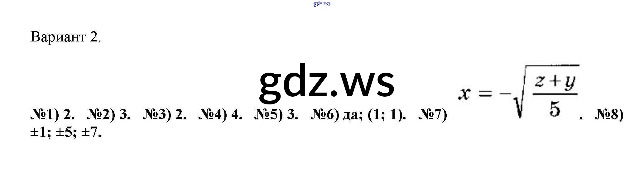 Готовый ответ Тесты - Алгебре 8 класс Дудницын Тематические тесты ФГОС