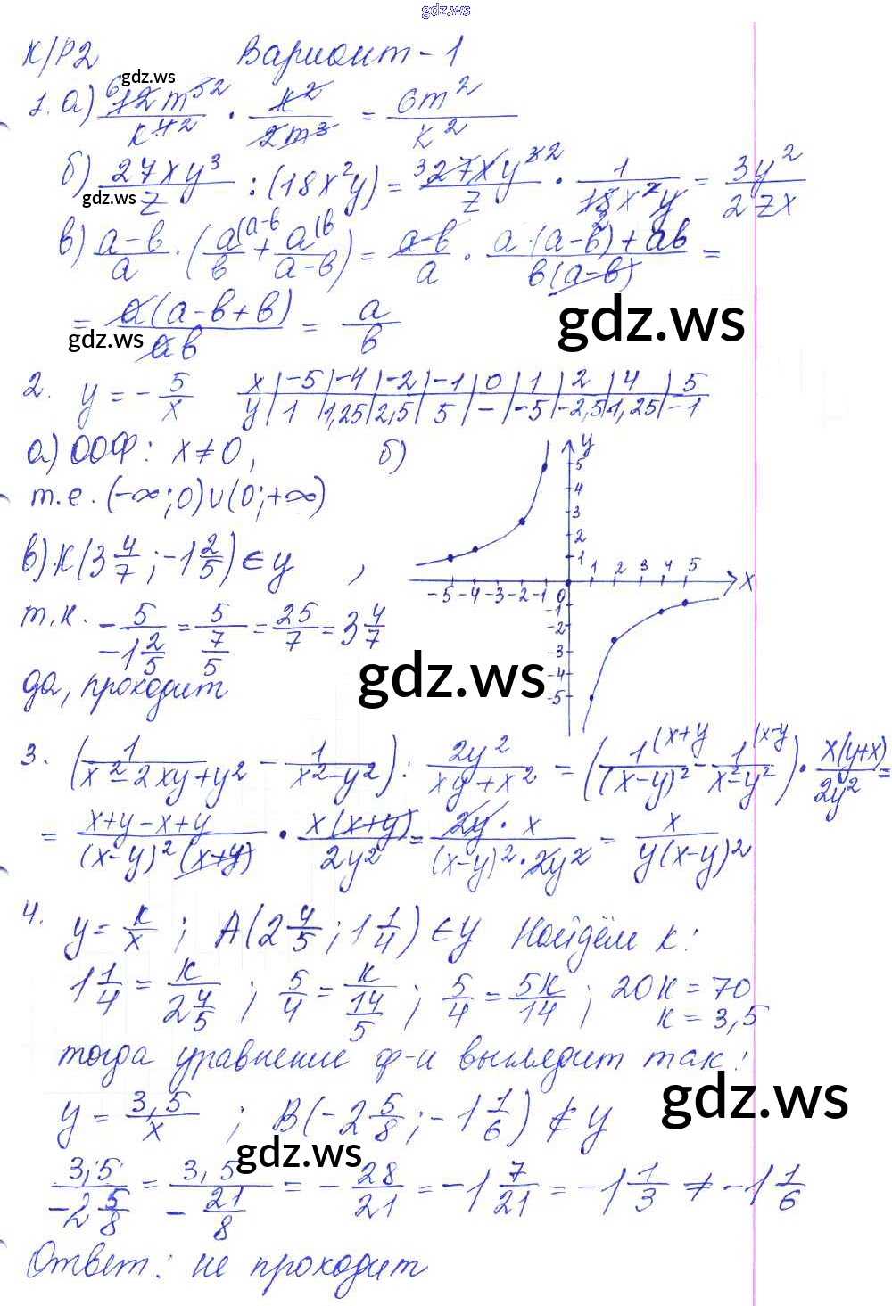 Готовый и полный ответ к КР-2. Произведение и частное дробей. Варианты - Алгебре 8 класс Дудницын Контрольные работы УМК ФГОС