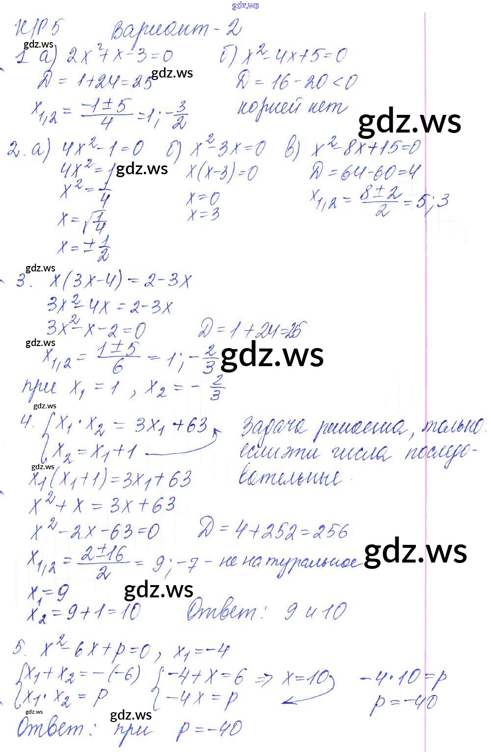 КР-5. Квадратные уравнения. Варианты