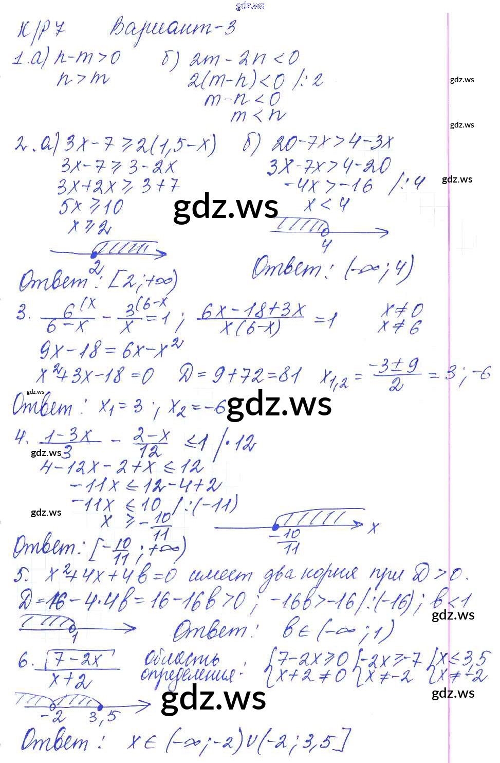 КР-7. Неравенства с одной переменной. Варианты