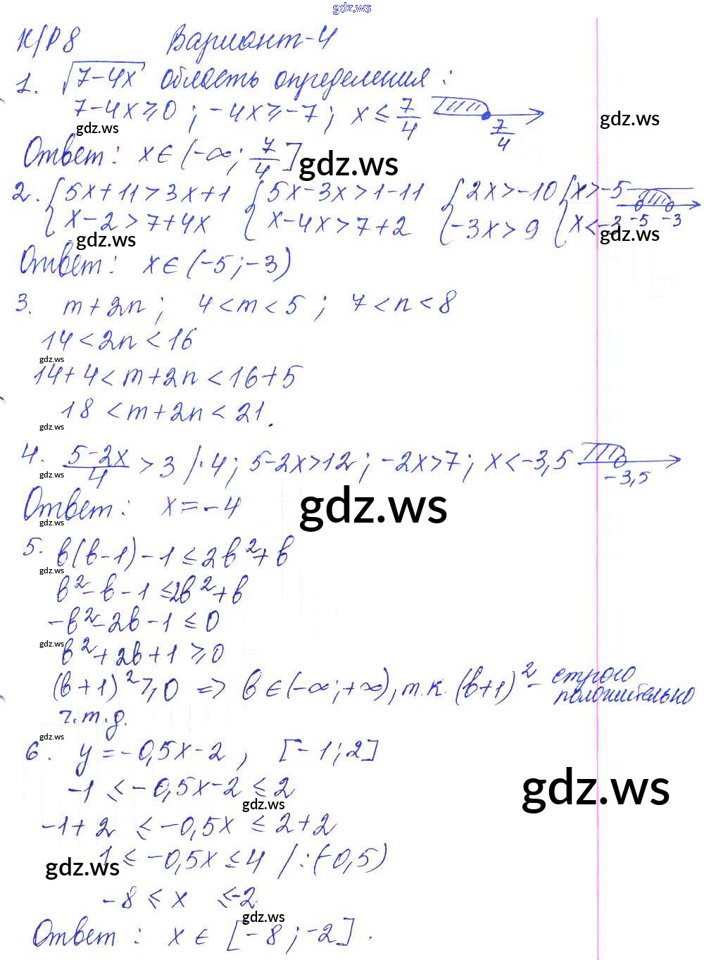Готовый и полный ответ к КР-8. Системы неравенств с одной переменной. Варианты - Алгебре 8 класс Дудницын Контрольные работы УМК ФГОС