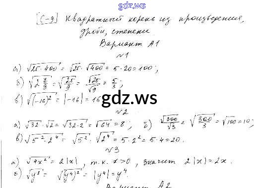 Готовый и полный ответ к СР-9. Варианты Самостоятельные работы - Алгебре 8 класс Ершова Самостоятельные и контрольные работы ФГОС