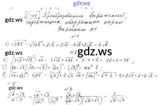 Готовый и полный ответ к СР-11. Варианты Самостоятельные работы - Алгебре 8 класс Ершова Самостоятельные и контрольные работы ФГОС