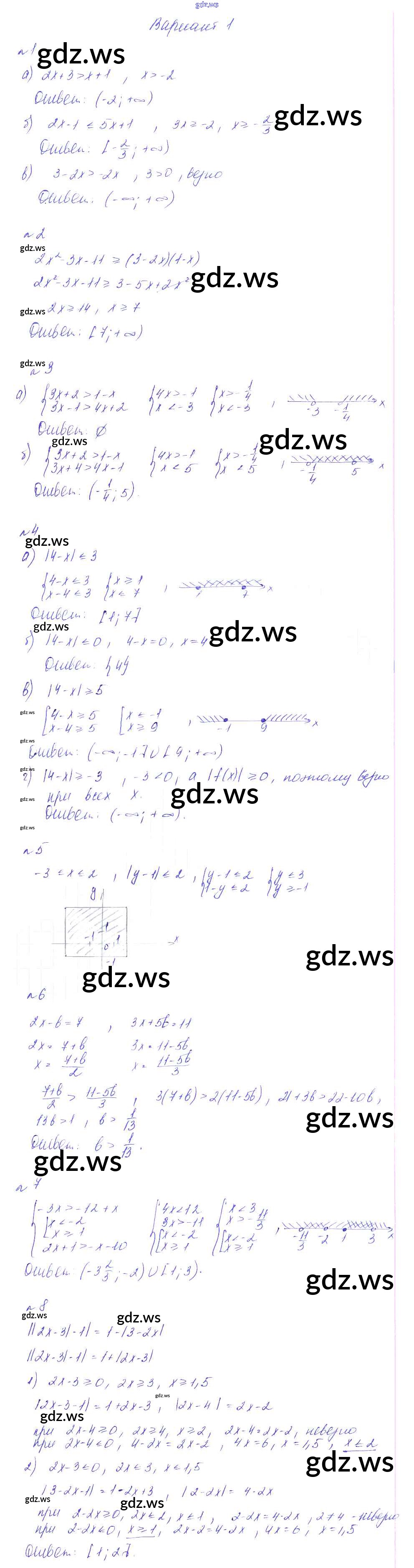 Готовый и полный ответ к КР-5. Неравенства Контрольные работы - Алгебре 8 класс Феоктистов Дидактические материалы ФГОС