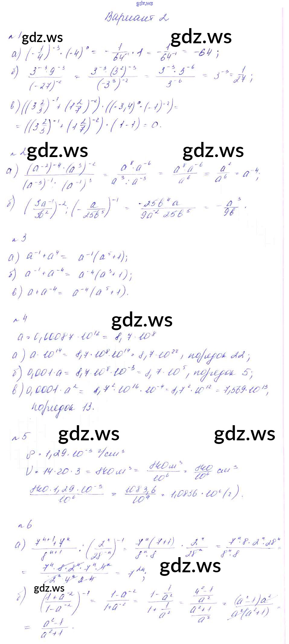 Готовый и полный ответ к КР-6. Степень с целым показателем Контрольные работы - Алгебре 8 класс Феоктистов Дидактические материалы ФГОС