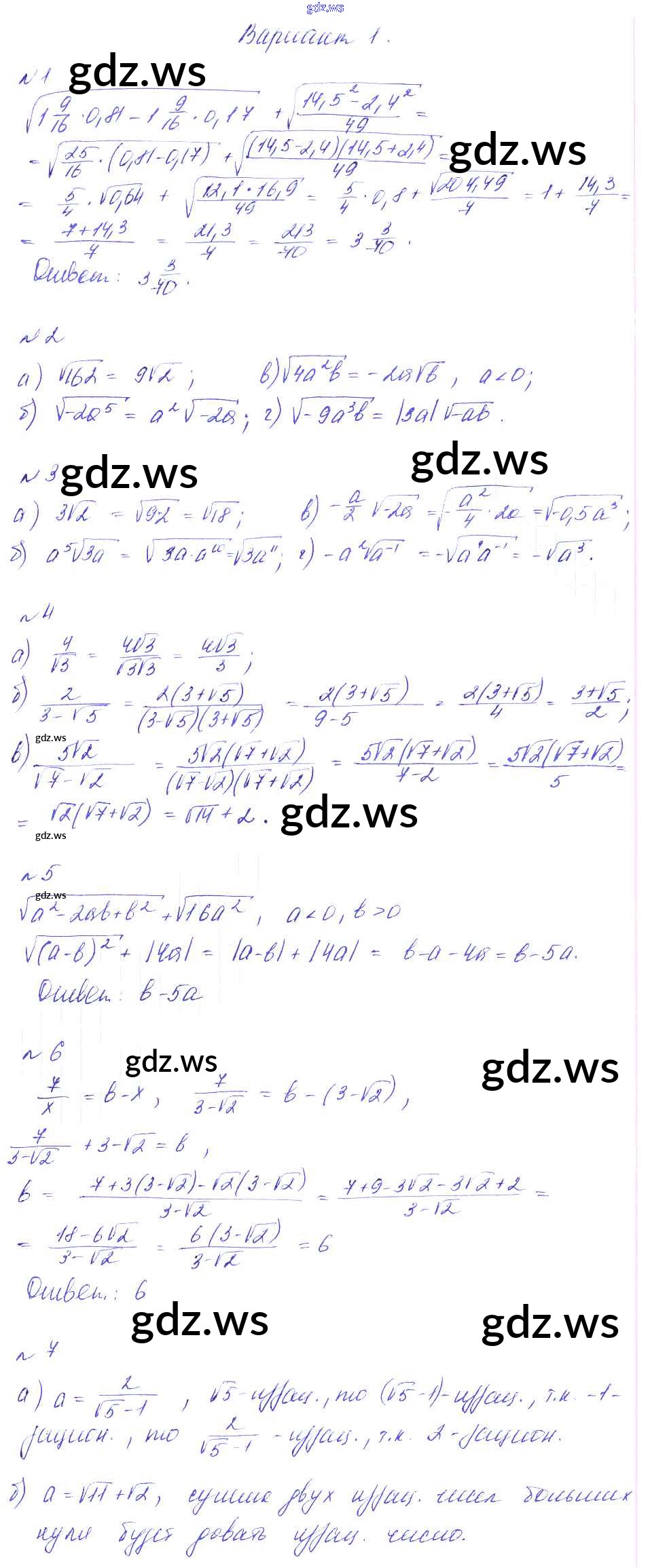 Готовый и полный ответ к СР-11. Свойства арифметического квадратного корня Самостоятельные работы - Алгебре 8 класс Феоктистов Дидактические материалы ФГОС