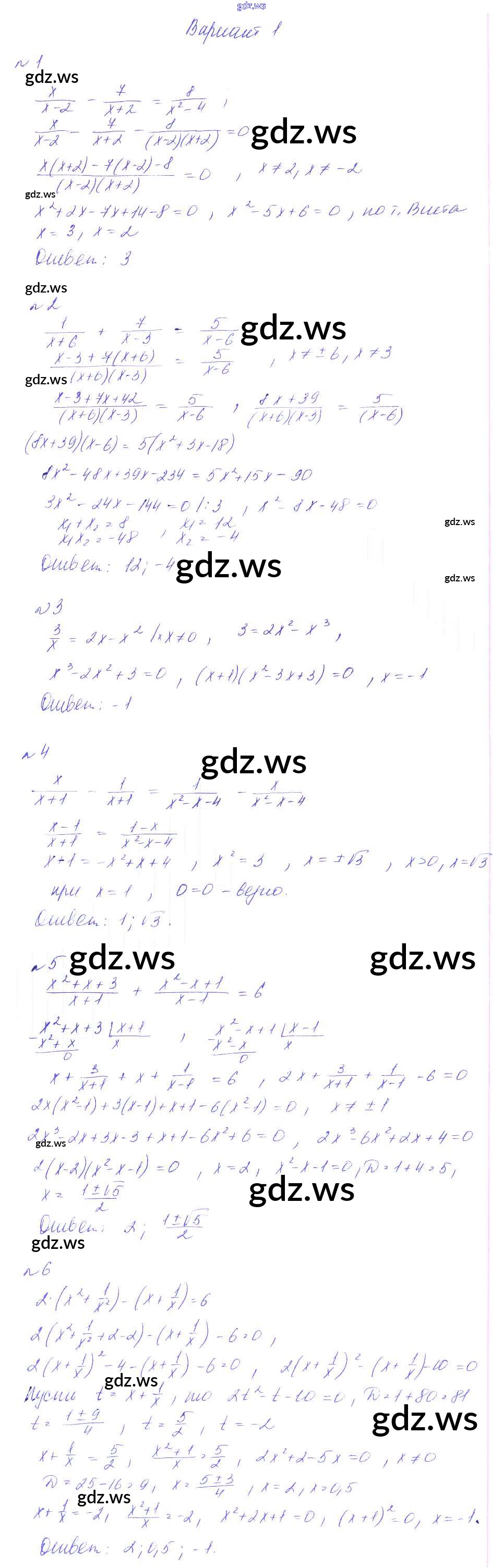 Готовый и полный ответ к СР-16. Решение дробно-рациональных уравнений Самостоятельные работы - Алгебре 8 класс Феоктистов Дидактические материалы ФГОС