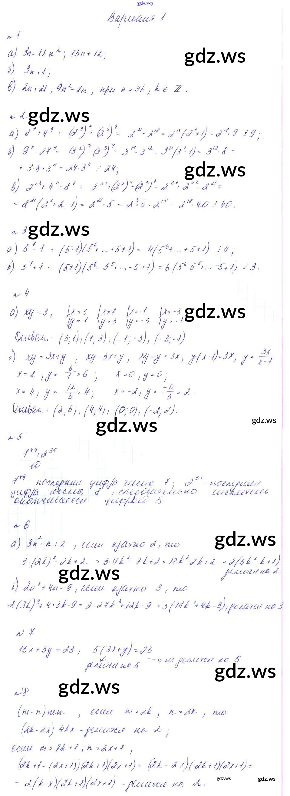 Готовый и полный ответ к СР-7. Свойства делимости, делимость суммы и произведения Самостоятельные работы - Алгебре 8 класс Феоктистов Дидактические материалы ФГОС