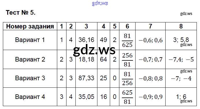 Готовый ответ Тесты - Алгебре 8 класс Глазков Контрольно-измерительные материалы (КИМ) ФГОС