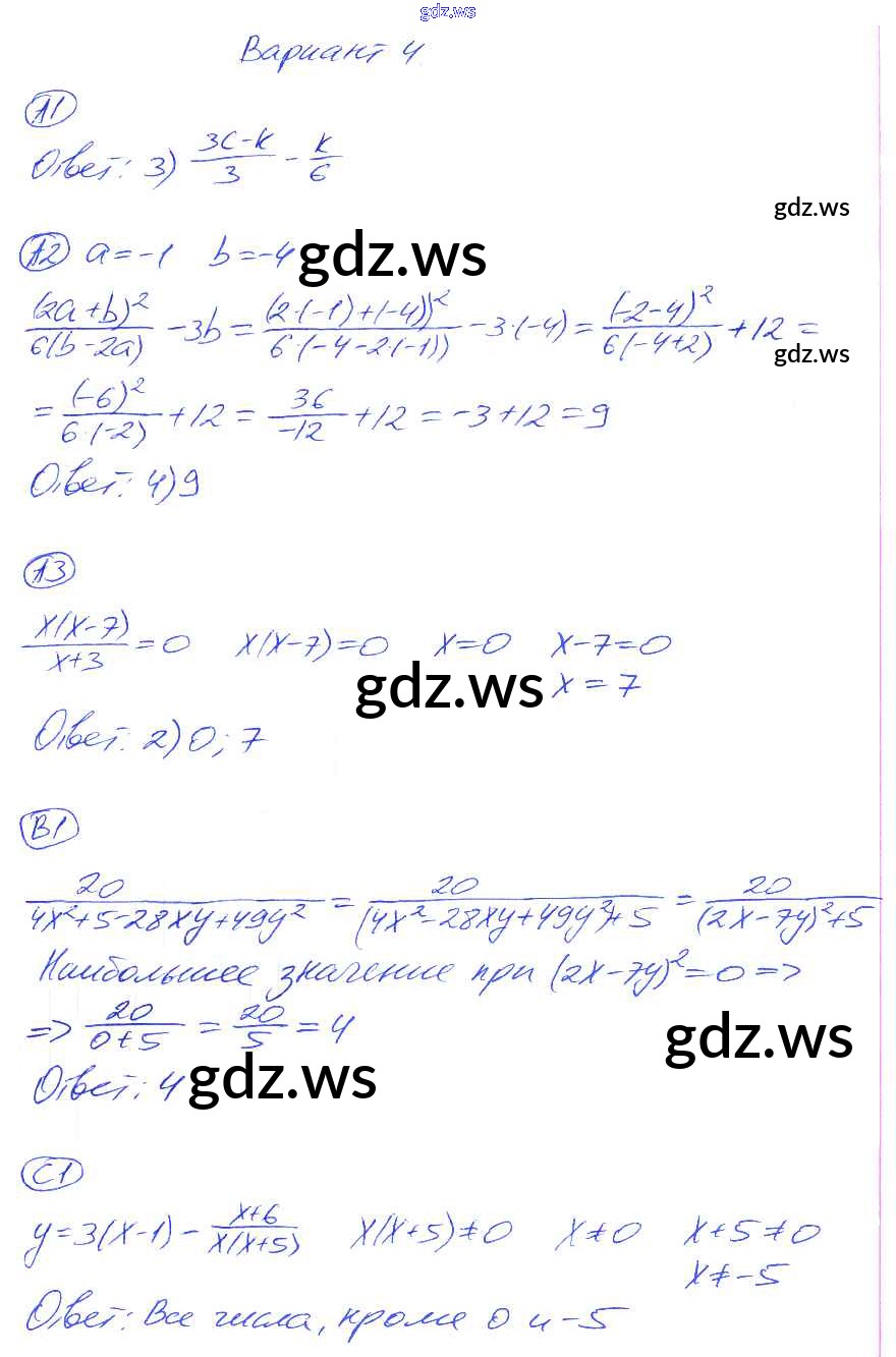 Готовый и полный ответ к СР-1. Варианты Cамостоятельные работы - Алгебре 8 класс Глазков Самостоятельные и контрольные работы УМК ФГОС