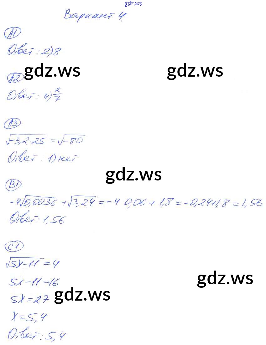 Готовый ответ СР-10. Варианты Cамостоятельные работы - Алгебре 8 класс Глазков Самостоятельные и контрольные работы УМК ФГОС