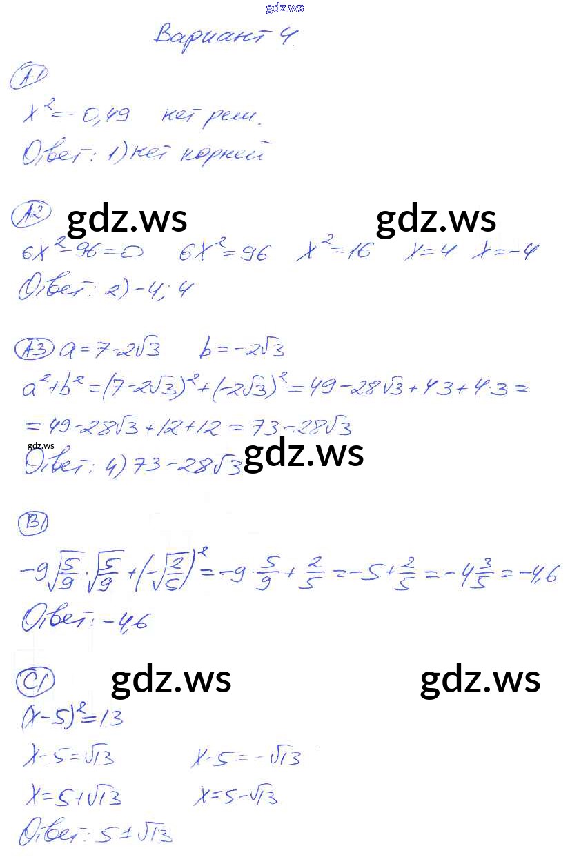 Готовый ответ СР-11. Варианты Cамостоятельные работы - Алгебре 8 класс Глазков Самостоятельные и контрольные работы УМК ФГОС