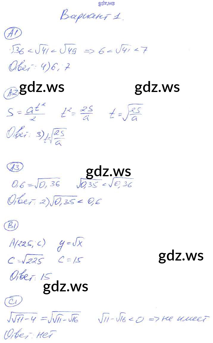 Готовый ответ СР-12. Варианты Cамостоятельные работы - Алгебре 8 класс Глазков Самостоятельные и контрольные работы УМК ФГОС