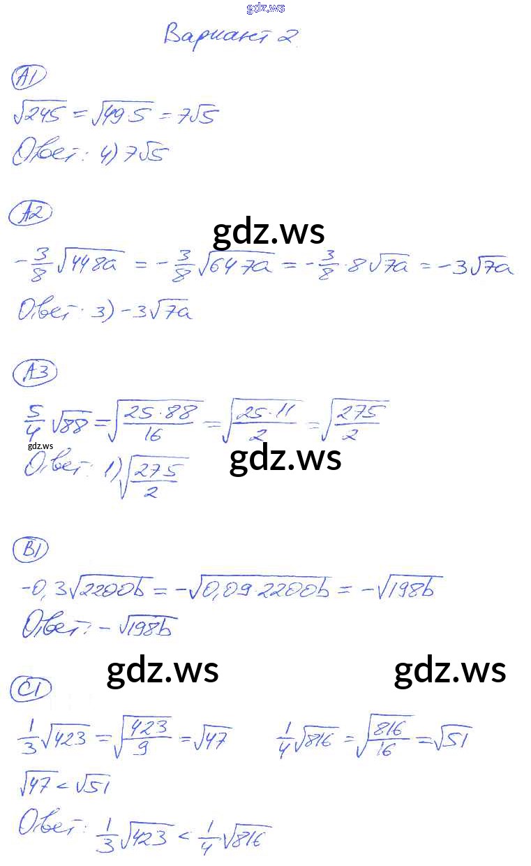 Готовый и полный ответ к СР-14. Варианты Cамостоятельные работы - Алгебре 8 класс Глазков Самостоятельные и контрольные работы УМК ФГОС