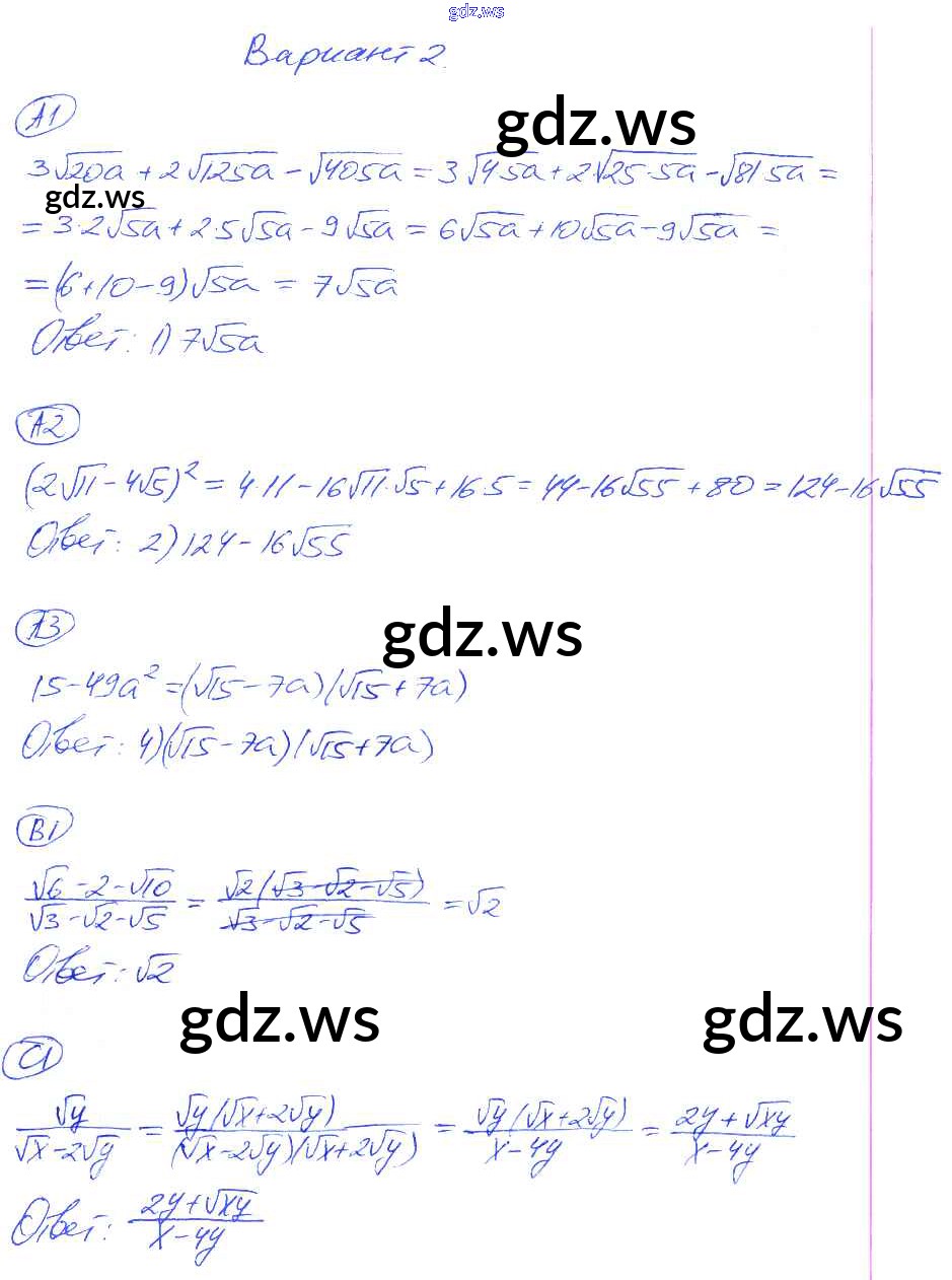 Готовый ответ СР-15. Варианты Cамостоятельные работы - Алгебре 8 класс Глазков Самостоятельные и контрольные работы УМК ФГОС
